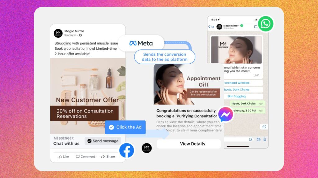 Facebook có công cụ Messenger, Whatapp, cho phép doanh nghiệp chuyển đổi ngay trên nền tảng
