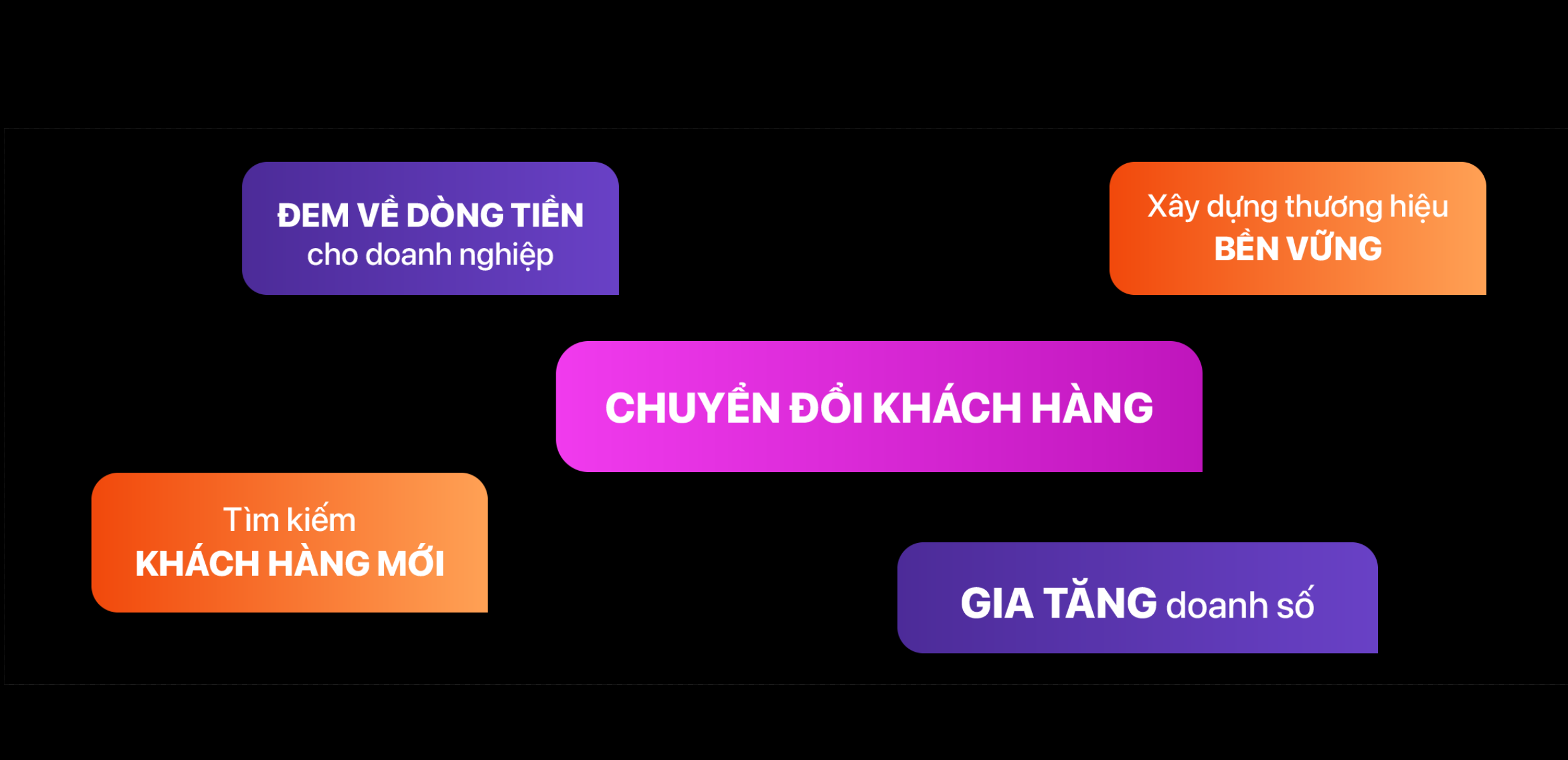 Chúng tôi không chạy theo chỉ số ảo. Điều quan trọng là hiệu quả thật và sự hài lòng lâu dài. Chúng tôi xây dựng lợi thế cạnh tranh cốt lõi và hướng đế mang tiền về cho doanh nghiệp